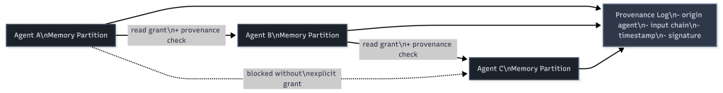 The fix is memory isolation per agent with provenance tracking. Each agent writes to its own memory partition. Cross-partition reads require explicit grants. Every write carries a provenance record.