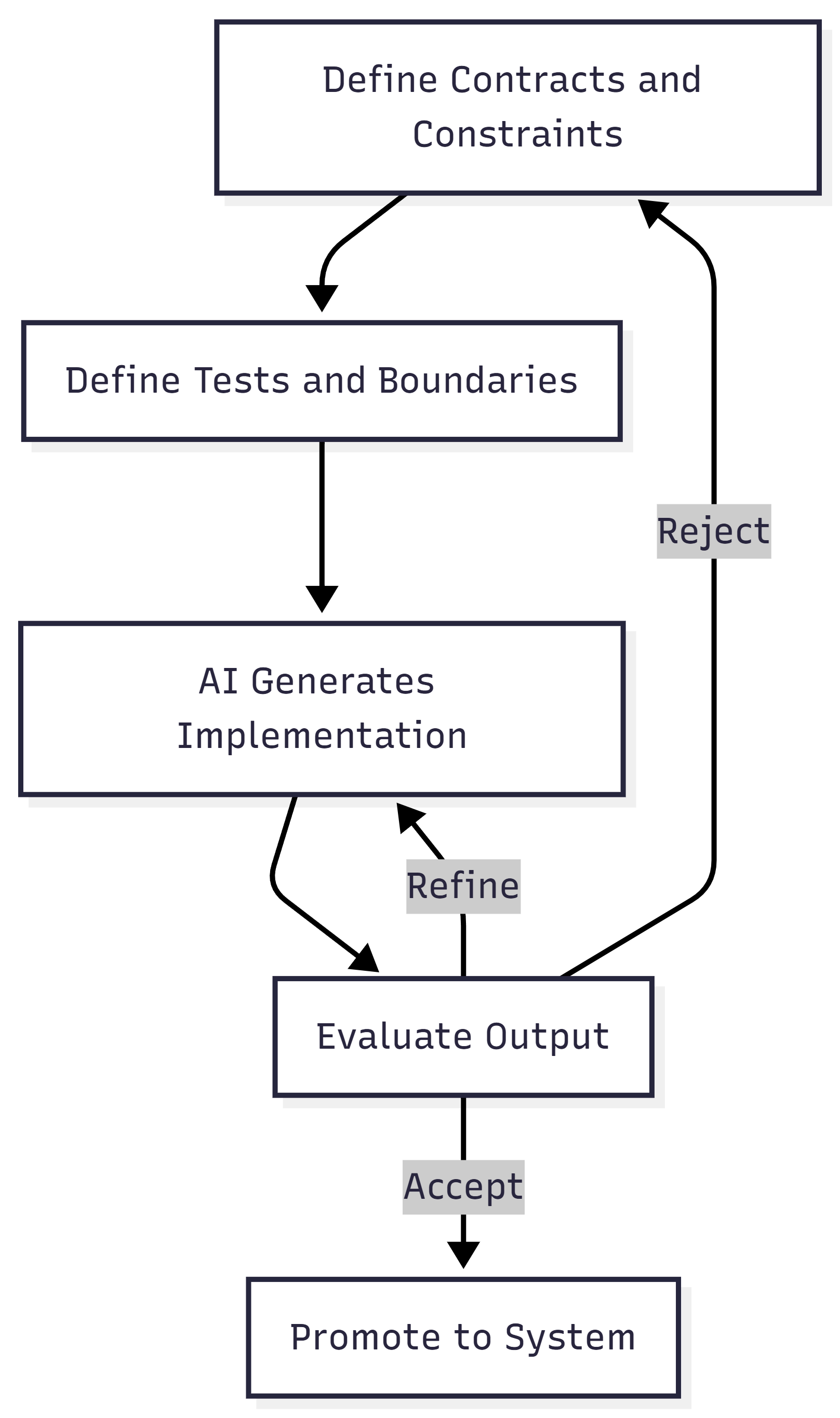 And with AI generating code faster than I can read it, constraint-first is the only sane approach. Define the contract. Define the tests. Define the boundaries. Then let AI implement. Evaluate the result. Accept, reject, or refine. Loop until convergence.